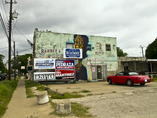Elections for state and local officials take place next month, as do our primaries for national elections. I saw this interesting collection of posters while biking through East Austin yesterday. The face shown at the upper right is a rendering of Cesar Chavez.