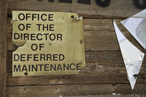 I saw this sign while walking around in Slackerville, a unique place in South Austin. The place did look as if the Director of Deferred Maintenance was doing a great job!
