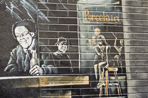 This is located on the exterior wall of a music venue in downtown Austin Texas.