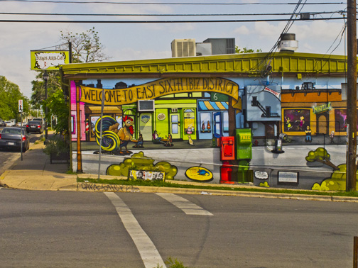 A whimsical meeting of the local cafe with the up and coming East 6th Street Business District in Austin, Texas.