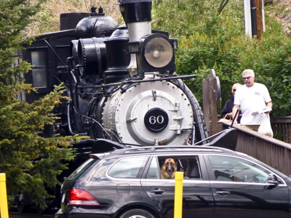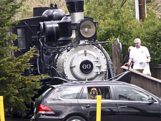 Took this picture yesterday on our trip to Idaho Springs, CO. I particularly like the combination of the dog, train and tourist.