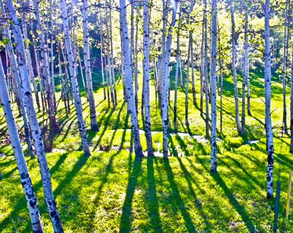 I took this picture in early May when we went to our place in Evergreen for Mother’s Day. The trees were back-lit. I used HDR toning for this shot.