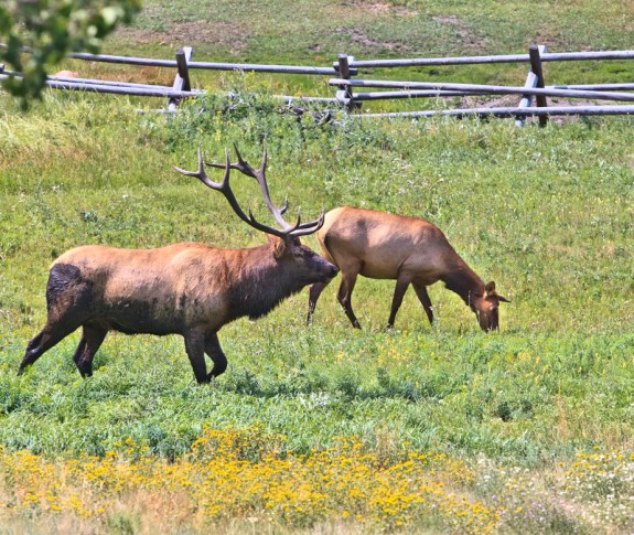 Our local bull elk with one of the girls. In about a month and a half the action will be picking up in this meadow.