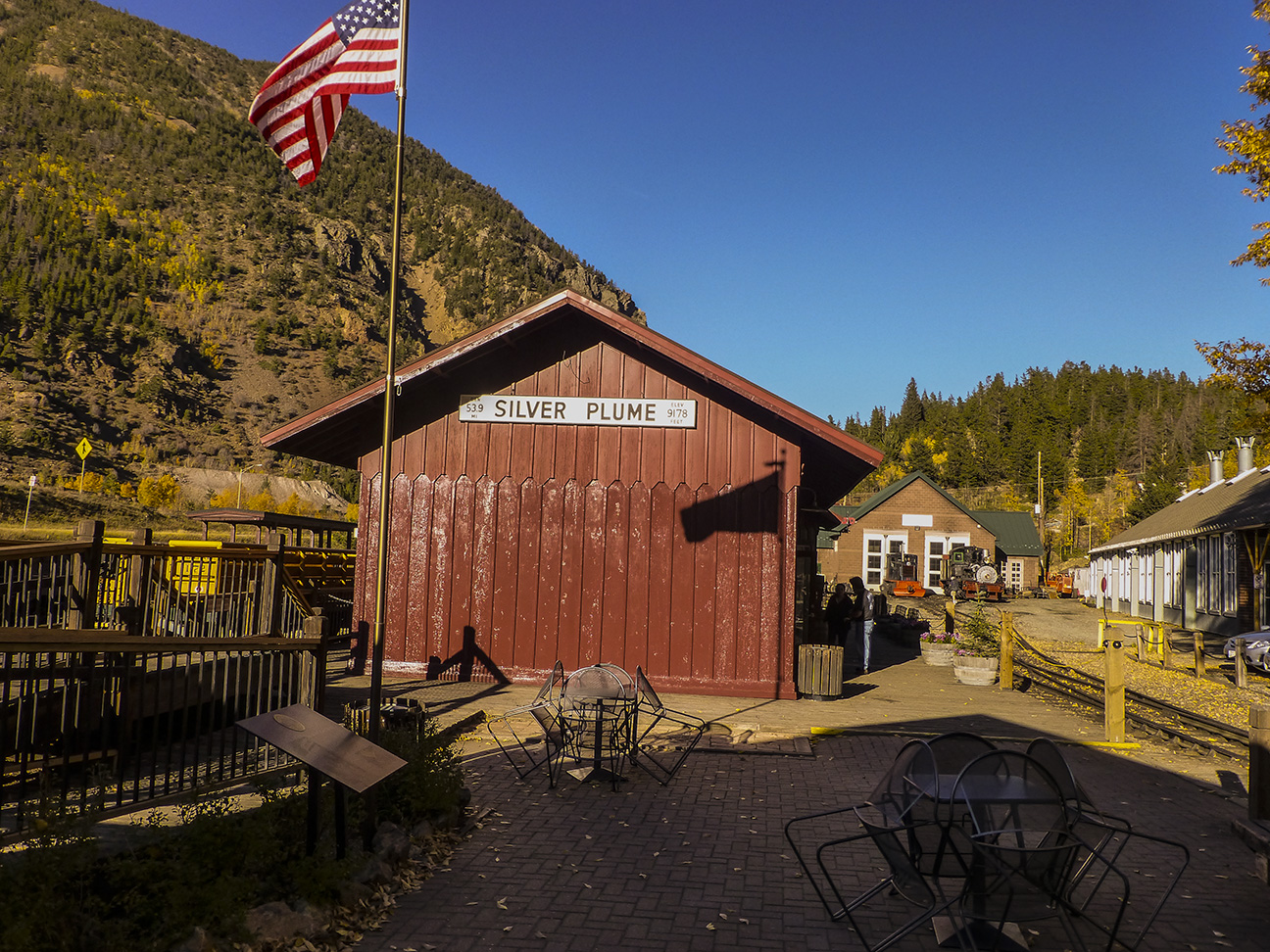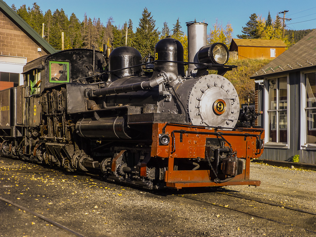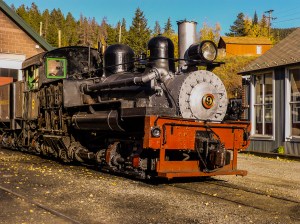 Of course, it was necessary to move the gold and laborers from the mines to markets where it could be sold and where the miners got their supplies. This necessity lead to the local Georgetown Loop railroad. The rail yard where the steam engines were serviced is located up the mountain from Georgetown in Silver Plume. The Station and the No 9 steam locomotive are shown below: