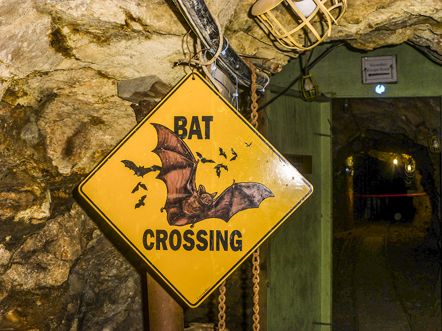 A reader requested to better-focused image of the Bat Crossing sign at the Phoenix Gold Mine.  Here it is.