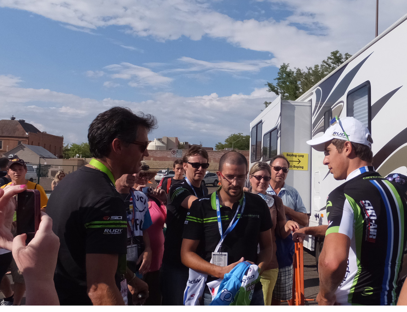 I went to the Cannondale store and purchased a Pro Team Jersey. I was lucky to run into Peter Sagan just as he was getting ready to have his urine tested. I asked him to autograph my jersey and he did.